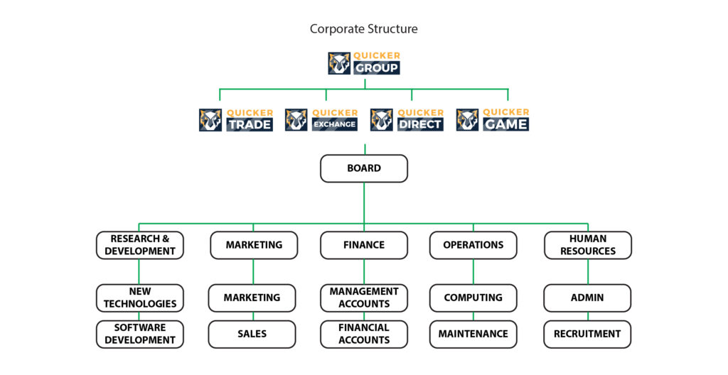 Quickergroup will adopt a functional structure, with a view to control information between each department through senior department heads.